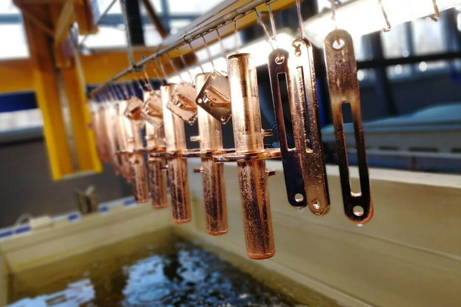 Процесс нанесения тонких слоев меди на поверхность металлических изделий. Нанесение покрытий производится гальваническим и химическим методами.